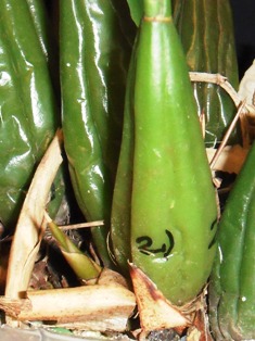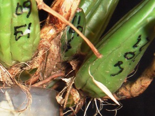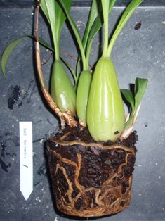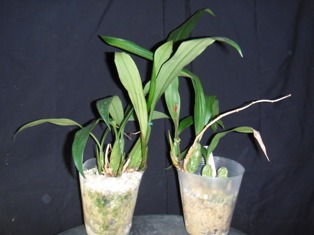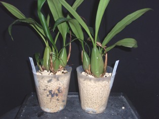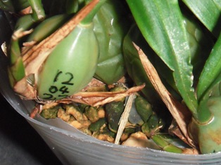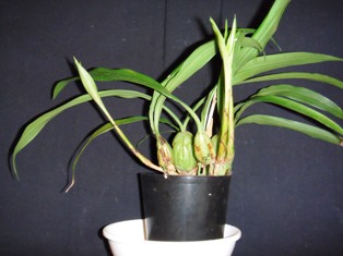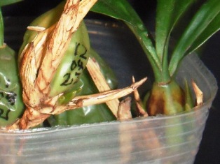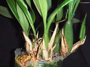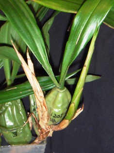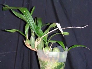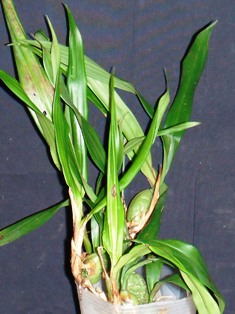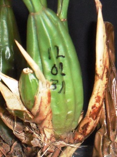 上旬春芽#4草丈24cmバルブ5.3x1.7x1.5cm 夏芽#21 5cm、#5(開花株#3の孫) 4cm 夏新芽#11 1cm分岐・群生株化 | 1 | 5 |