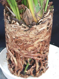 根を掴むと傷つくので、根の間の植込み材料を取り除いて結果として根をほどいていくつもりです。