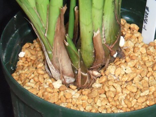 新芽が伸びています。凍害で作落ちしましたが、回復し始めて、昨年よりバルブが大きくなりました。