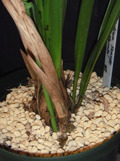 親株が草丈80cm余り、バルブ幅4cm余りの巨大株なので、株分け・植替えしても良く育っています。
