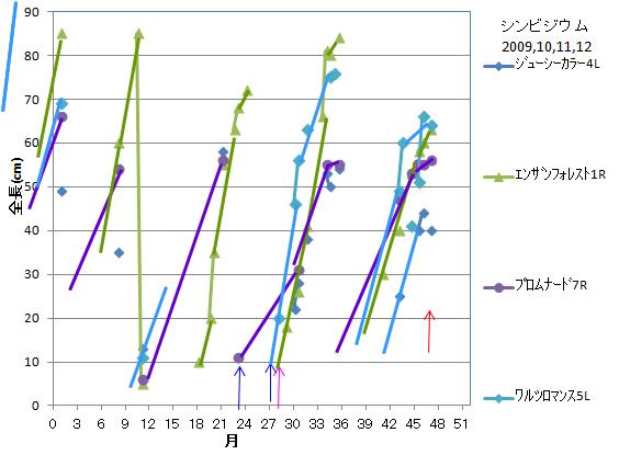 新芽の伸び種名の後の数字は葉の枚数最大