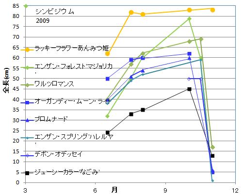 この例では伸び盛りの7月には差がありましたが、9月には皆60cm前後で差は小さくなりました。