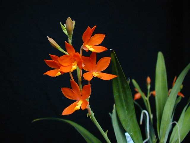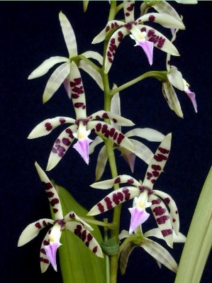 コスタ・リカ、パナマ 原産。花径 4.5 cm、花茎は直立してきれいな花を 総状にたくさんつける。芳香があり、花持ちもよい。(蘭爛、写真も)
