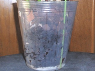 育て方が上手になって、12cm径以上の鉢を多く使うようになると、鉢の乾きが遅くなり、根腐れの危険が増えてきます。水やり後に鉢の中を見ていると、上の方と鉢底近くは余り湿っていないで、中間の部分に水滴が数日に渡って見られるようなことが起きます。水滴が溜まるということは、いわば湿度100%で、水蒸気を運ぶような空気の流れも弱いことを示し、根腐れの危険があると思われます。