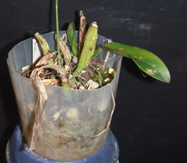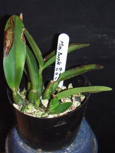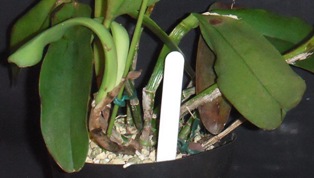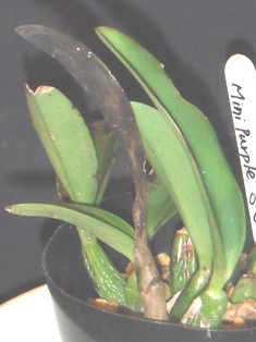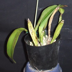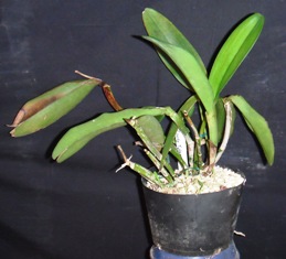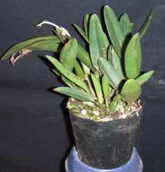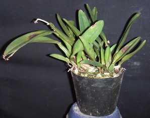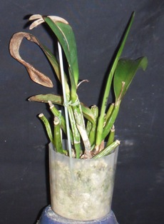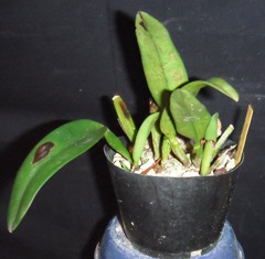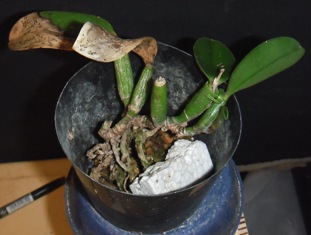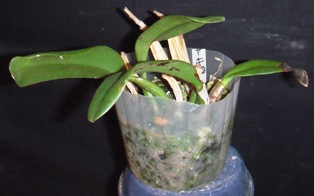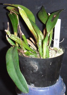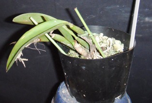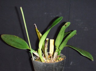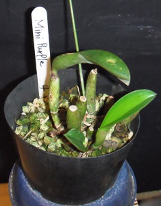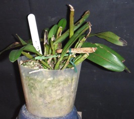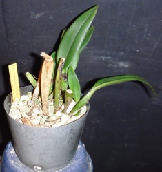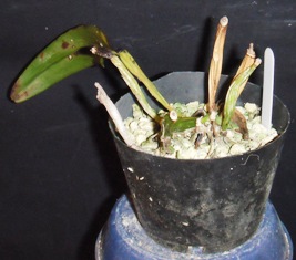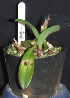 株#1、当初は6本立ち、重量17gのミニ苗、開花株でバルブ5cm葉7cm程度