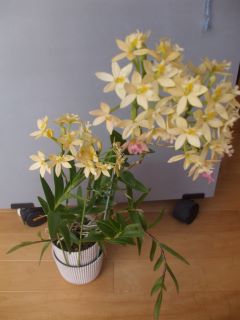 エピデンドラムと小さな鉢に植わったミニカトレア、オドントグロッサムは「小学校・病院」へ引っ越し