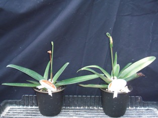 入手開花株#1には既に親に近い草丈の子株#2がついていたため、1年足らずでシースが出ました。