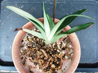 夏新葉が出ました。まだ丈が親の半分以下の幼株です。半年位で
