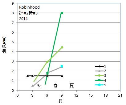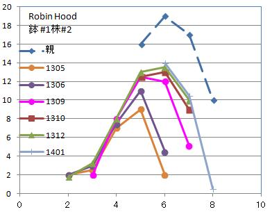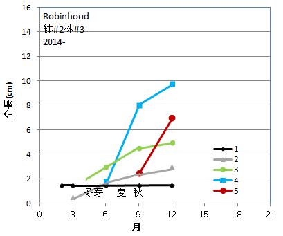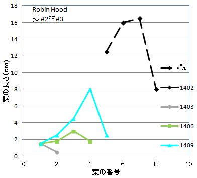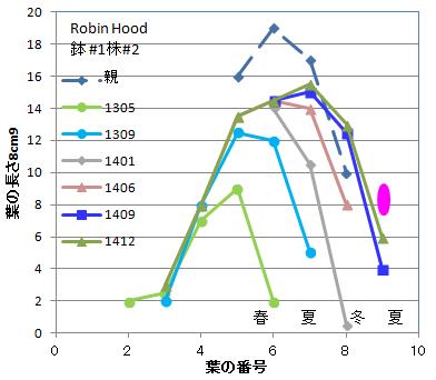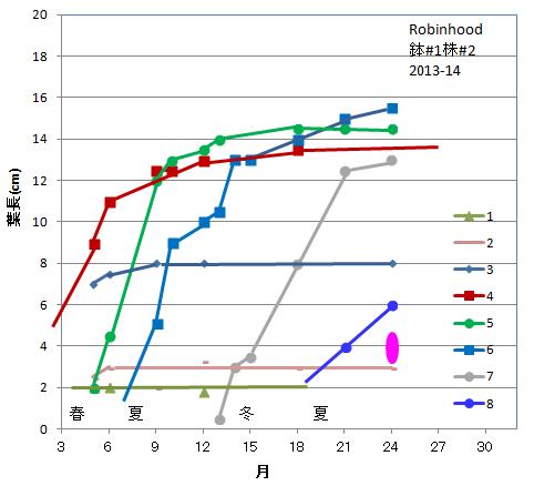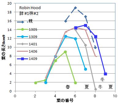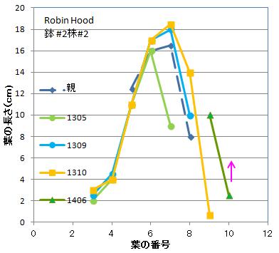 ロビンフッド:6-7枚目から始まって夏から秋に新葉が2枚でました。