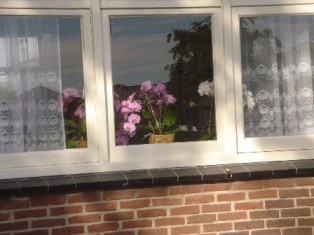 日が弱く寒いヨーロッパでは、レストランや店や家庭の出窓などでコチョウランが咲いています。