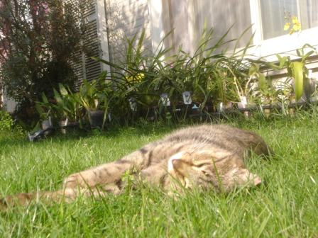 再び夏日、秋の高温は貴重です。同じ温度でも、秋は苗が水分を多く含み、日が低くなって、木陰が作りやすいため、日向に近くても大丈夫です。一番丈夫なシンビジウムを日向の最も南に置き、ミニ洋ランなどは例えばシンビジウムの葉陰で育てることができます。夏日の終り頃は、確実にできるなら、日向に置き、夏日のみ遮光ネットを掛けるようにすると太陽の恵みを十分利用することができます。
