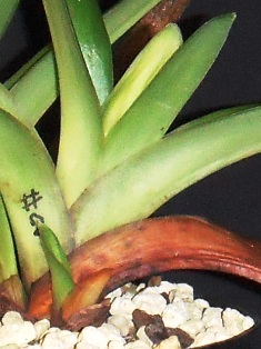 夏芽、丈止り、バルブやや太り葉は少し伸び。