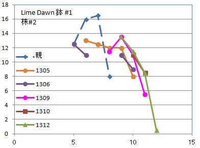 子#11は夏の植替え時に葉が11枚でしたが、その後葉が5枚出て、その分茎も伸びています。