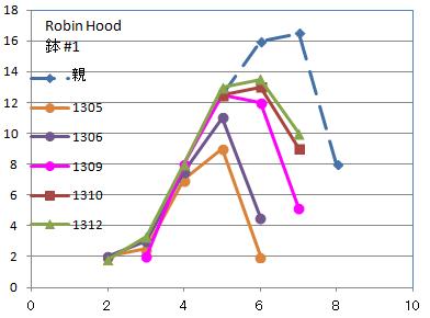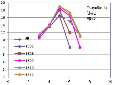 下の図は株ごとに、横軸に葉の番号、縦軸にその葉の長さを取ったものです。