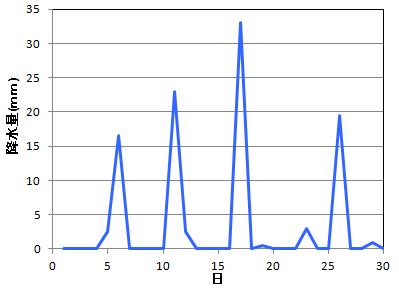週1回の水やりとすれば、大半は雨で足りるため、水やりは上旬の1回だけで良い。10月も同様。