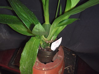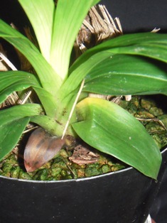 草丈の伸びは止まっていますが、バルブは生長を続けています。親株の薄葉を落とさないようにする必要がありそうです。