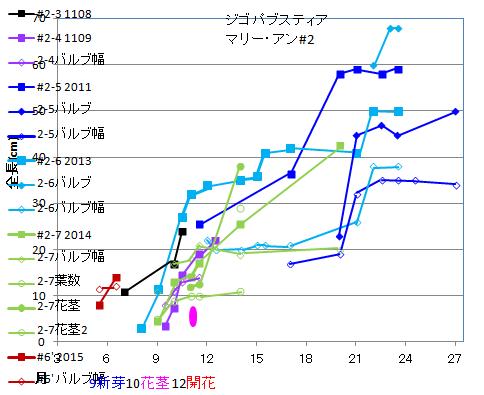 新芽の親株#6が大きいことが必要なようです。バルブは冷害の作落ちから年々大きくなっています。